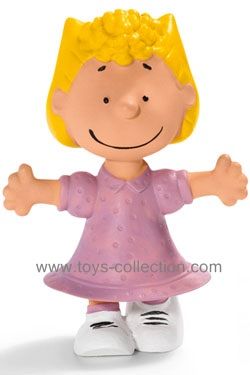 Figurine de Sally l'amie du célèbre chien Snoopy avec son fidèle compagnon l'oiseau Wookstock et ses amis